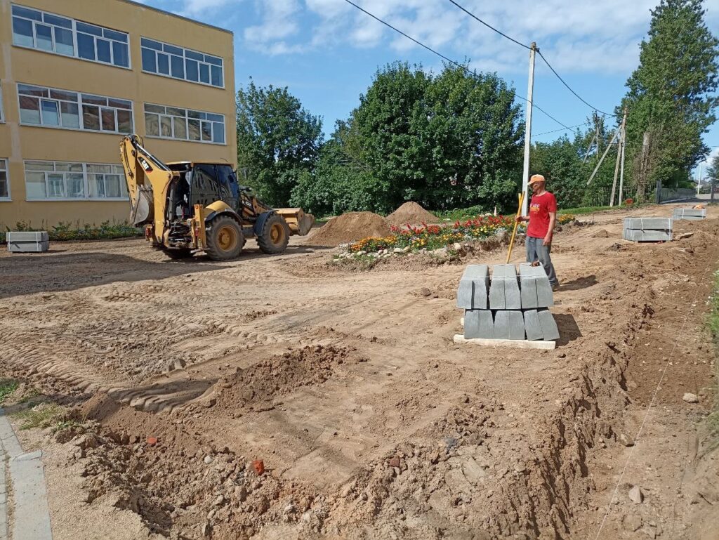 В рамках подготовки к новому ученому году, перед главным входом здания Хиславичской средней школы проводится замена асфальтного покрытия.