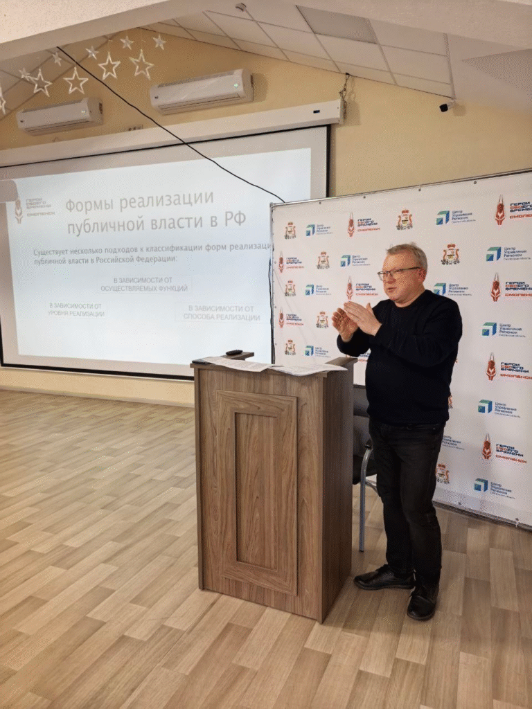 Доцент Президентской академии в Смоленске Сергей Асриев напомнил участникам о задачах, функциях, полномочиях и ответственности федеральных властей.