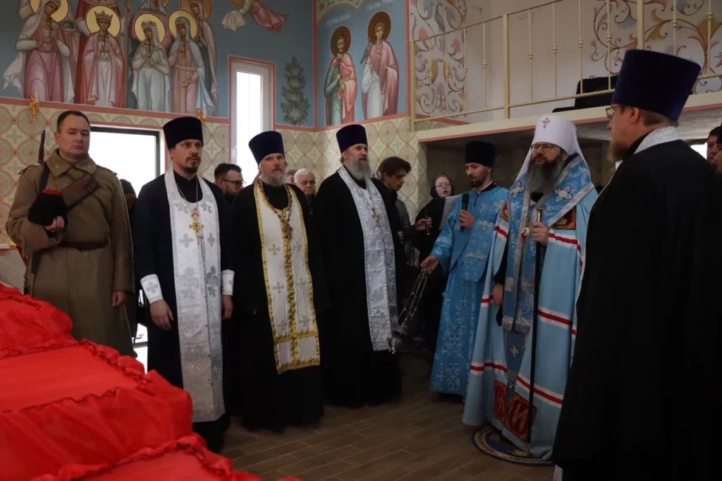 Перезахоронили солдат со всеми воинскими почестями прямо у стен храма на территории Братского кладбища.