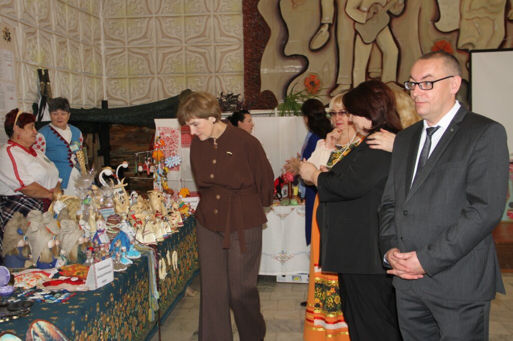 Праздничное мероприятие открылось выставкой декоративно-прикладного искусства «Славянское подворье». Мастера из Беларуси и Смоленской области продемонстрировали свои творения, выполненные в традиционных и современных техниках. Гости могли не только полюбоваться разнообразными изделиями из соломки, текстиля, глины, бисера и других материалов, но и приобрести понравившиеся поделки. В импровизированном кафе хозяйки Хиславичского округа встречали гостей ароматными пирогами, блинами и сладкими угощениями.