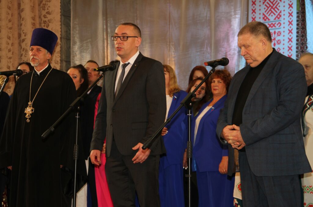Немало теплых слов собравшиеся услышали от благочинного церквей Хиславичского округа настоятеля Борисоглебского храма протоиерея и «Почетного гражданина Хиславичского округа» Романа Свистуна, председателя Горецкого районного Совета депутатов М.В. Потапенко, начальника отдела культуры Мстиславского районного исполнительного комитета Н.А. Бискуп, заведующей сектором культуры Чаусского районного исполнительного комитета С.Г. Герцевой, директора ЦКС Славгородского района Н.В. Гуторовой.