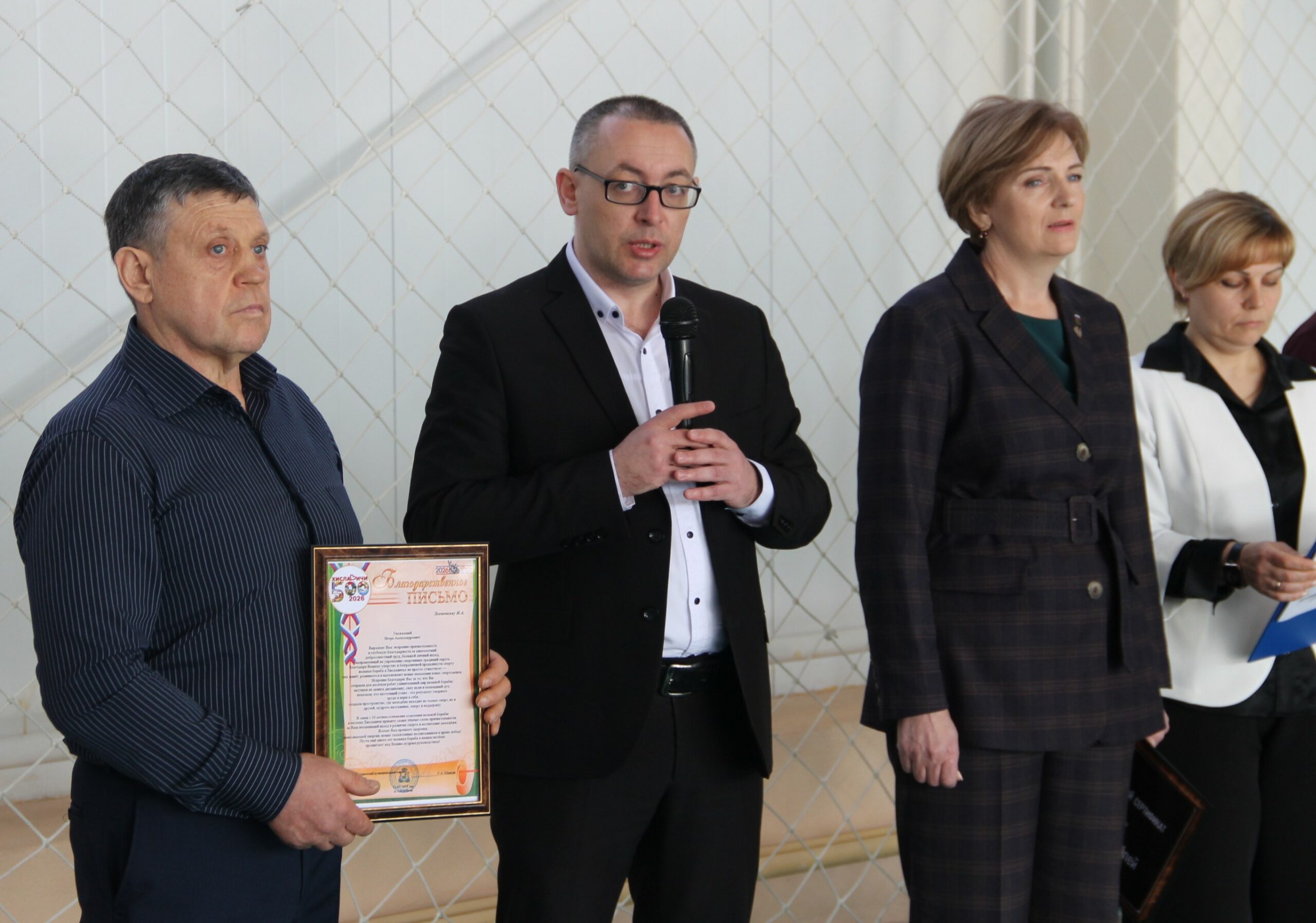 Открывая торжественную часть мероприятия с приветственным словом к собравшимся обратился глава муниципального образования «Хиславичский муниципальный округ» Смоленской области Сергей Шапкин. Он отметил, что 30 лет — это важный юбилей, который стал возможен благодаря людям, преданным этому виду спорта и делающим все возможное, чтобы передать свои знания и навыки хиславичским ребятам, чтобы те добивались успехов, как на ковре, так и в жизни. Глава округа от всей души поблагодарил Игоря Леоненкова за его бесценный вклад в развитие вольной борьбы в нашем округе и вручил ему Благодарственное письмо. Пользуясь, случаем, глава также пригласил всех собравшихся на празднование юбилея нашего поселка, в рамках которого планируется организовать не менее зрелищный турнир по вольной борьбе.