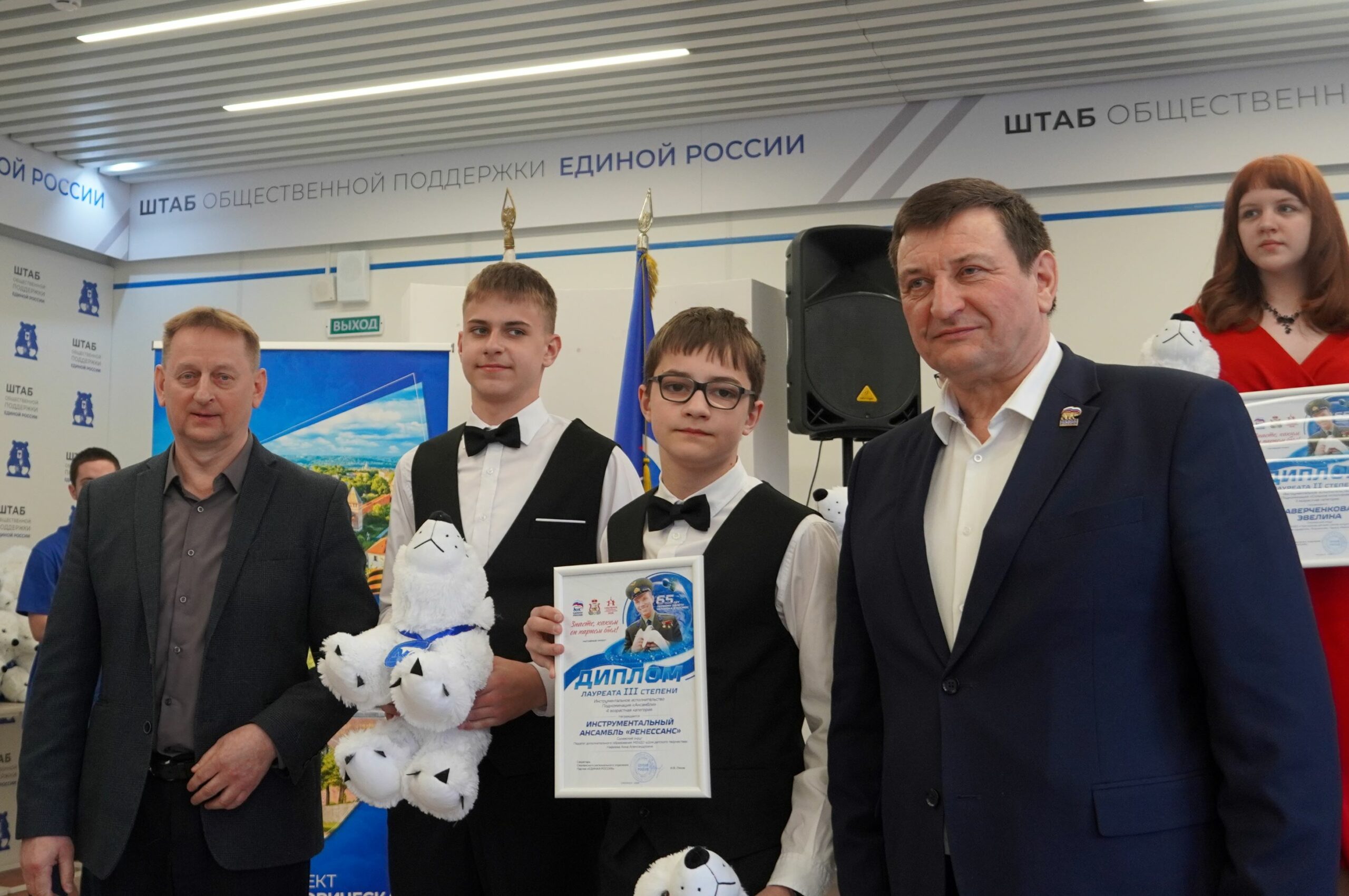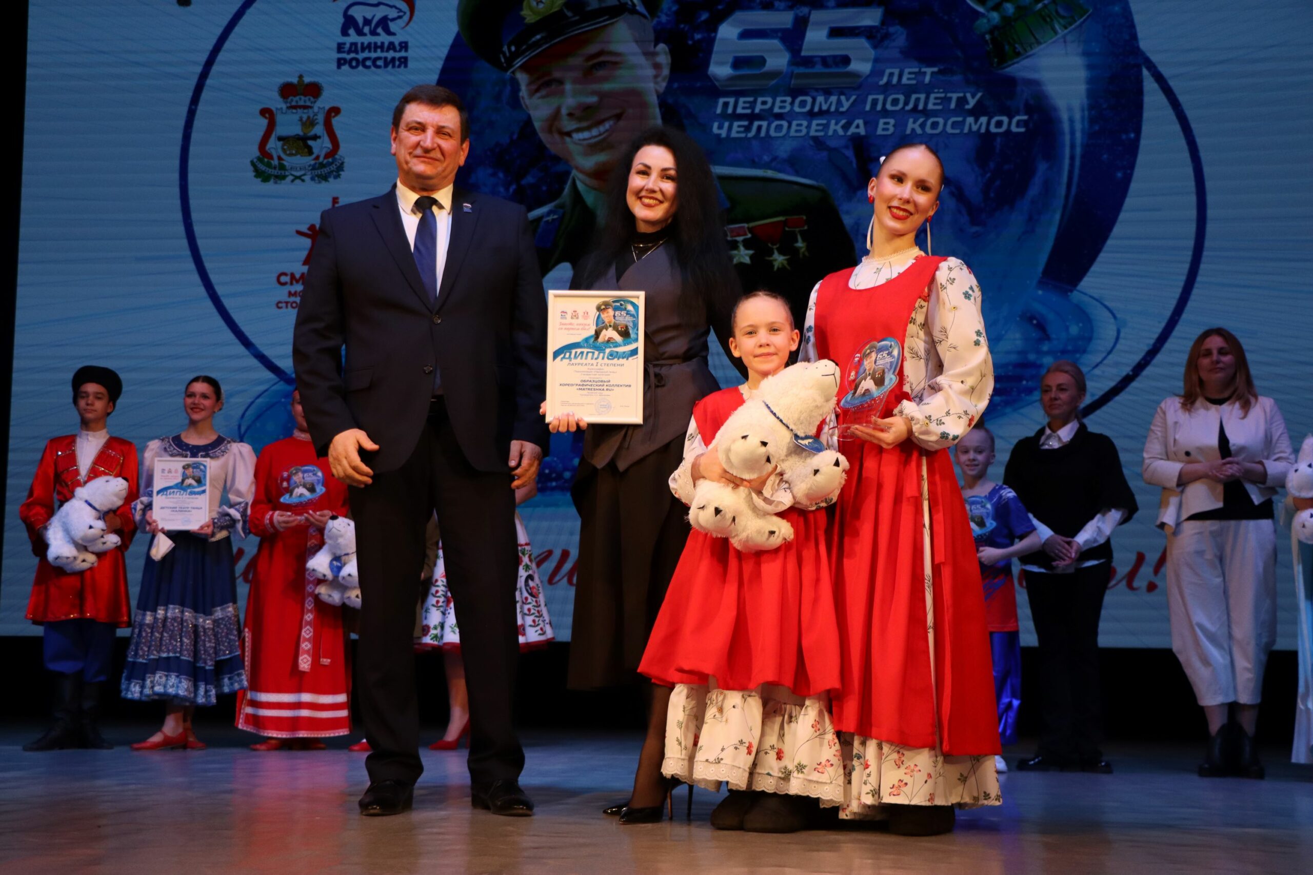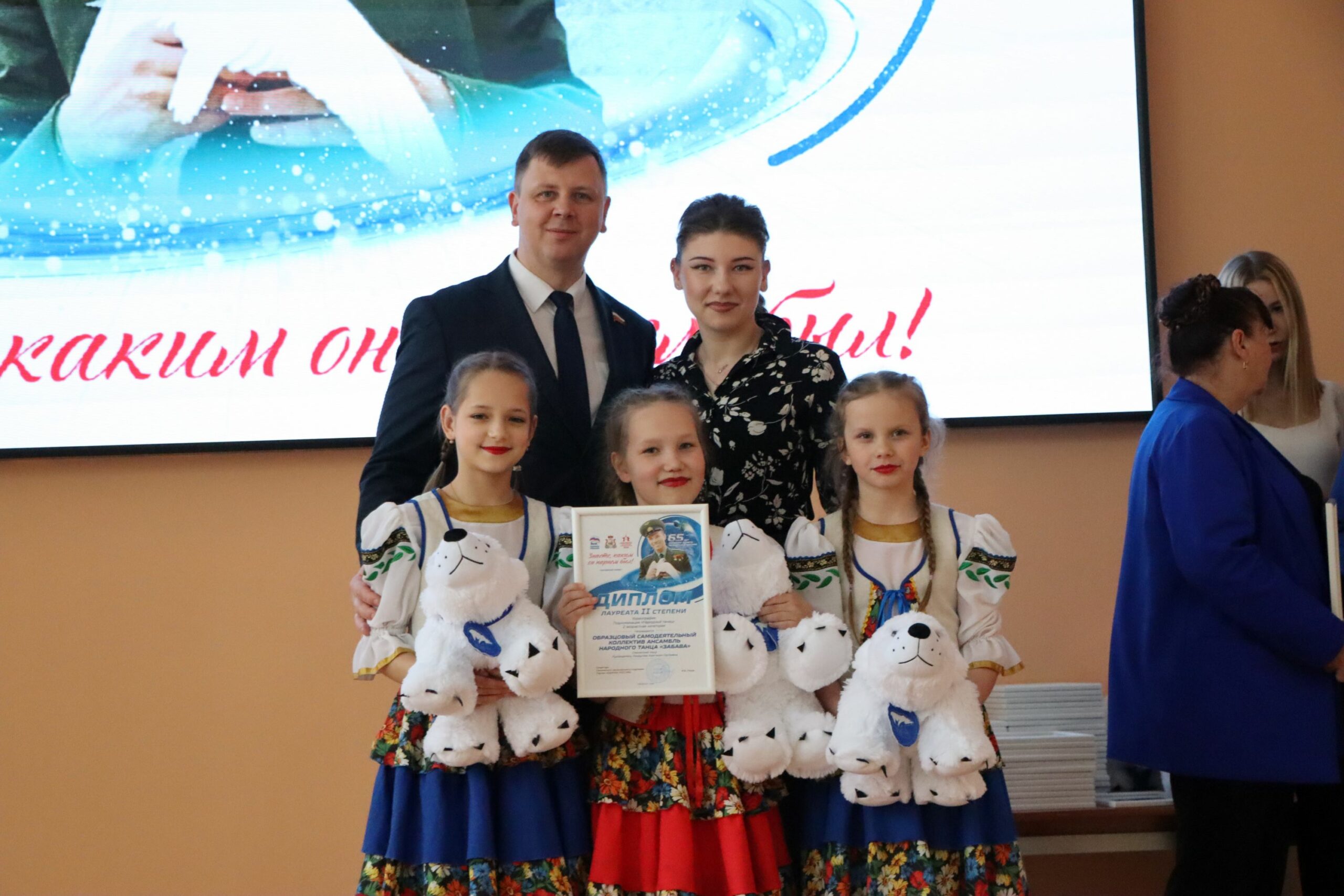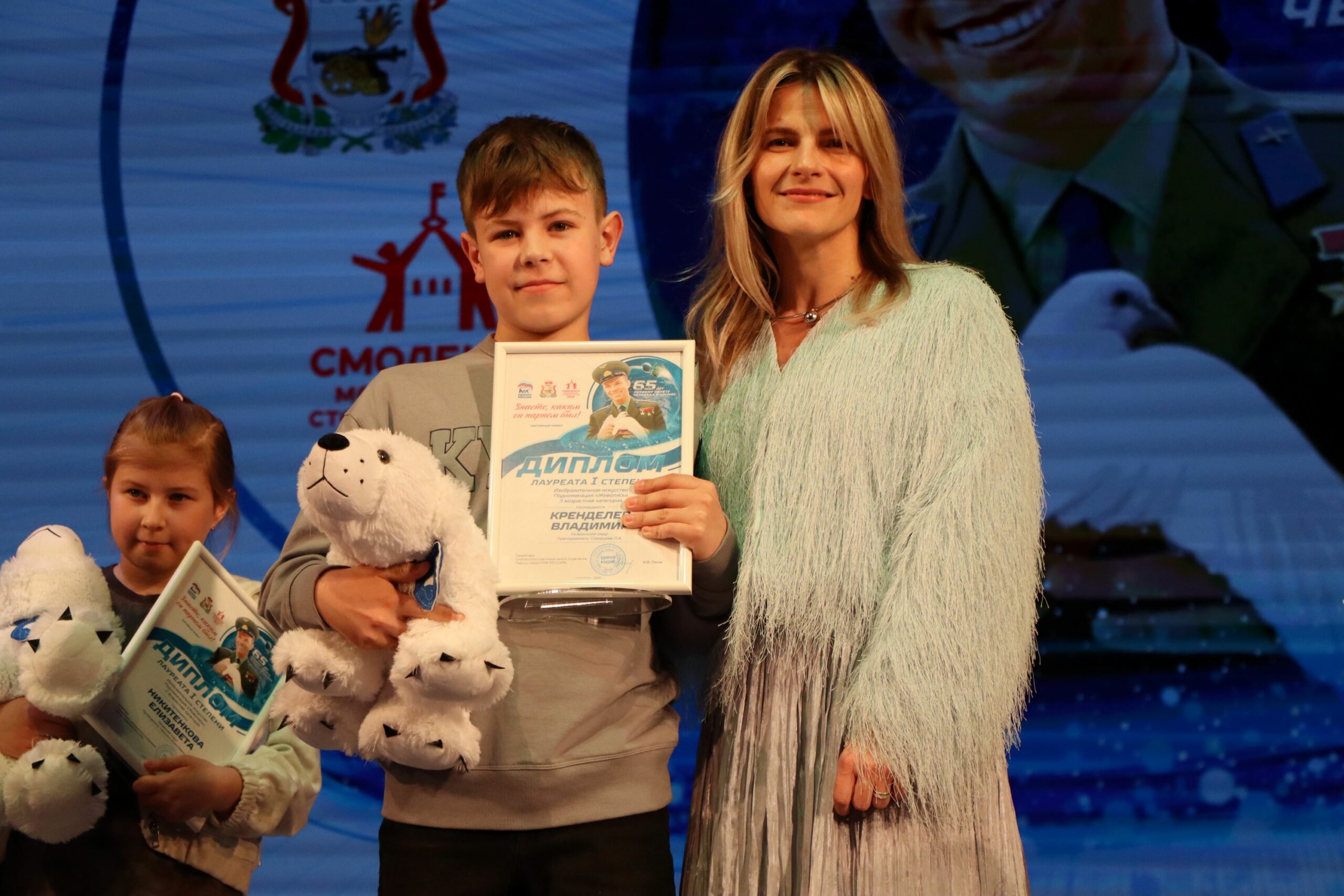 На гала-концерте он наградил лучших хореографов. А перед этим в Штабе общественной поддержки вручил дипломы смолянам, которые участвовали в конкурсе и заняли почетные 2 и 3 места — исследователям, художникам, инструменталистам. Одновременно на второй площадке призеров-вокалистов и хореографов отмечал сенатор РФ Артем Малащенков.