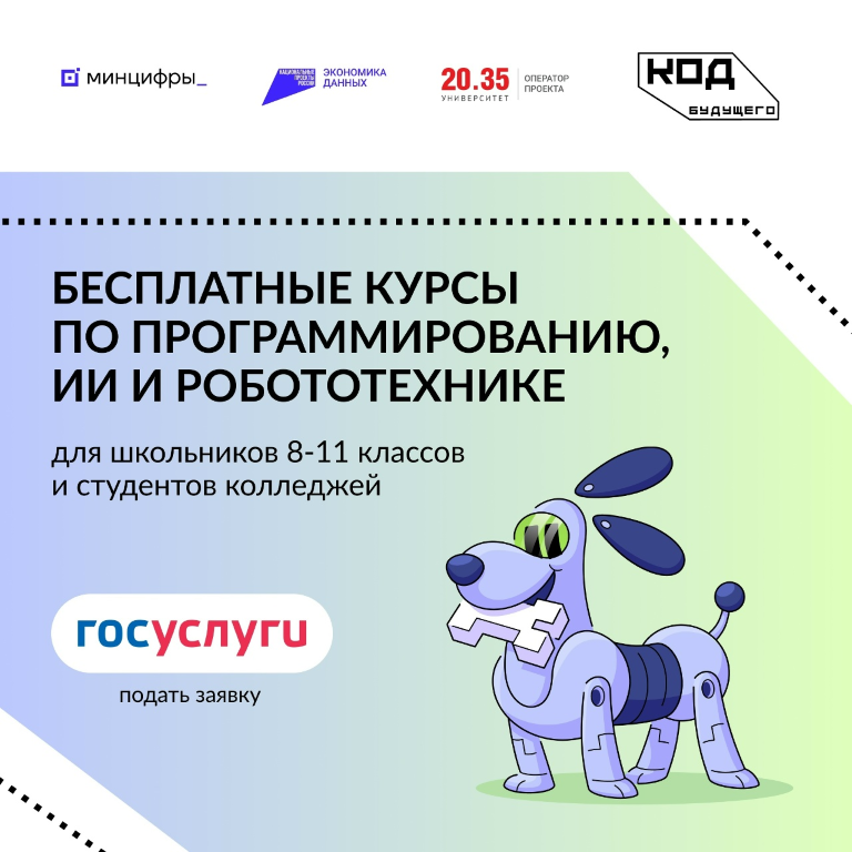 Программирование, робототехника и искусственный интеллект — попробовать себя в ИТ или углубить свои знания можно, ещё учась в школе. Подайте заявку на курсы для подростков «Код будущего» на Госуслугах и обучайтесь бесплатно. Те, кто успешно освоит программу, могут получить дополнительные баллы к ЕГЭ при поступлении в ряд вузов. Кто может участвовать: — ученики 8-11 классов; […]